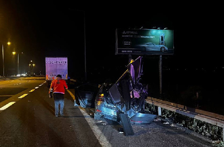Otoyolun Hendek geçişinde Ankara Emniyet Müdürlüğü Koruma Şube Müdürlüğü'nde görevli 3 polis memurunun içinde bulunduğu araç, yabancı plakalı tıra arkadan çarptı.