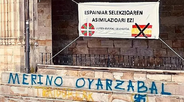 Ancak bu sevinç, annesinin memleketi olan Biscayan kasabası Elorrio'da bir grup yabancının Oyarzabal ve Merino'nun milli takımdaki varlığına tepki gösteren pankartlar asmasıyla gölgelendi.