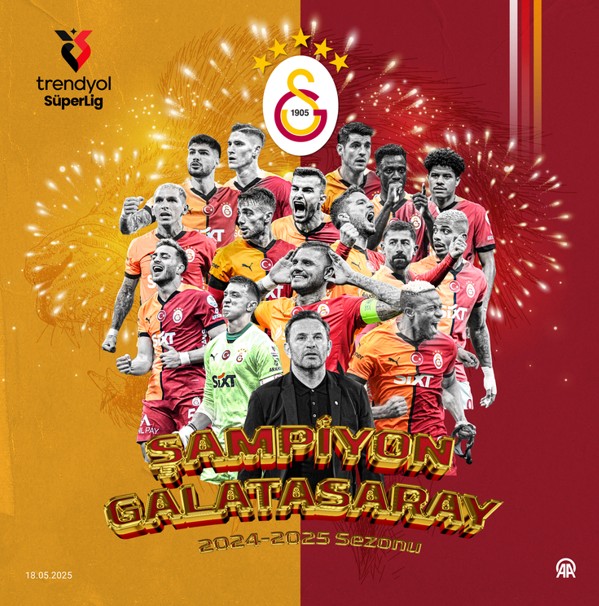 Sarı ve kırmızı, 25'i̇nci̇ kez Süper Li̇g'i̇n zi̇rvesi̇nde... Galatasaray hem 25'i̇nci̇ şampi̇yonluğu, hem de beşinci yıldızı kutluyor...