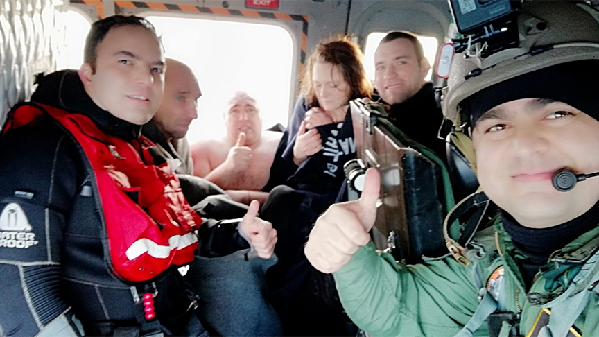 Daha önce mürettebattan biri kadın 4 kişinin karaya çıkarılıp hastanelere kaldırılmasının ardından, Sahil Güvenlik Komutanlığına ait helikopterle 2 kişinin cenazesi ile kurtarılan 3 kişi daha Çarşamba Havalimanı Sahil Güvenlik Komutanlığı pistine getirildi.