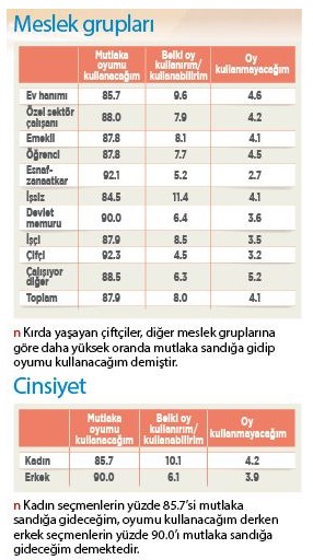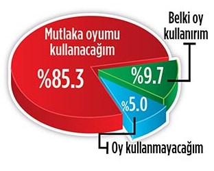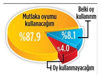 Halkın yüzde 87.9’u ‘Mutlaka sandığa gideceğim, oyumu kullanacağım’ diyor.