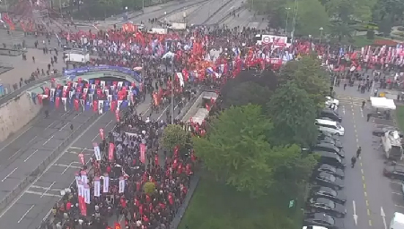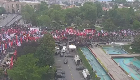 1 Mayıs Emek ve Dayanışma günü dolayısıyla kutlama yapılmasına izin verilmeyen Taksim Meydanı'nda 1 Mayıs'ı kutlamak isteyen konfederasyon, sendikalar, işçi grupları ve siyasi parti temsilcileri Saraçhane'de toplandı.