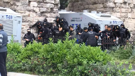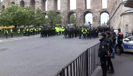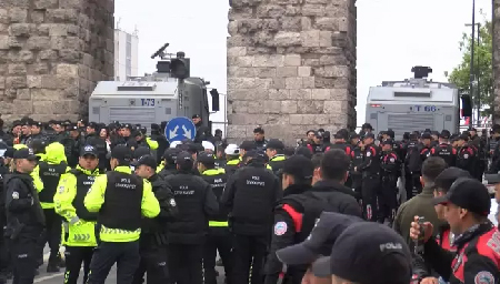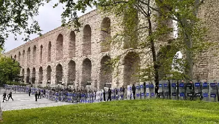 Bozdoğan Kemeri'nde polis adeta yığınak yaptı. TOMA ve bariyerlerle yol kesilirken çevredeki keskin nişancılar dikkat çekti. Yüzlerce polis kemer çevresinde bekliyor.
