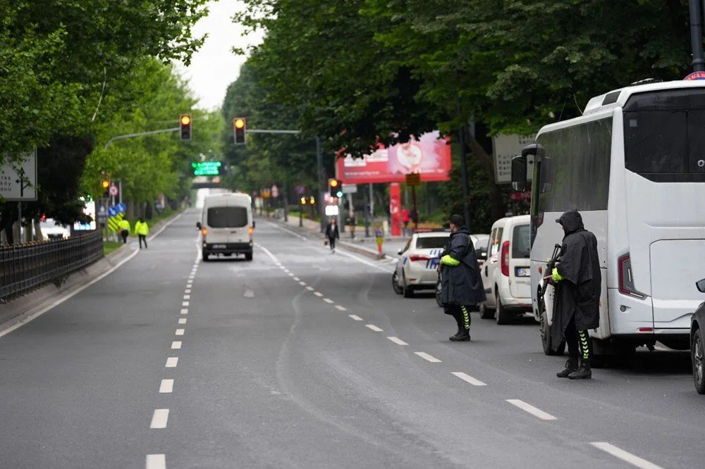 Saraçhane'nin çevresindeki yollar trafiğe kapatılırken, araçlar trafik polislerince alternatif güzergahlara yönlendiriliyor.