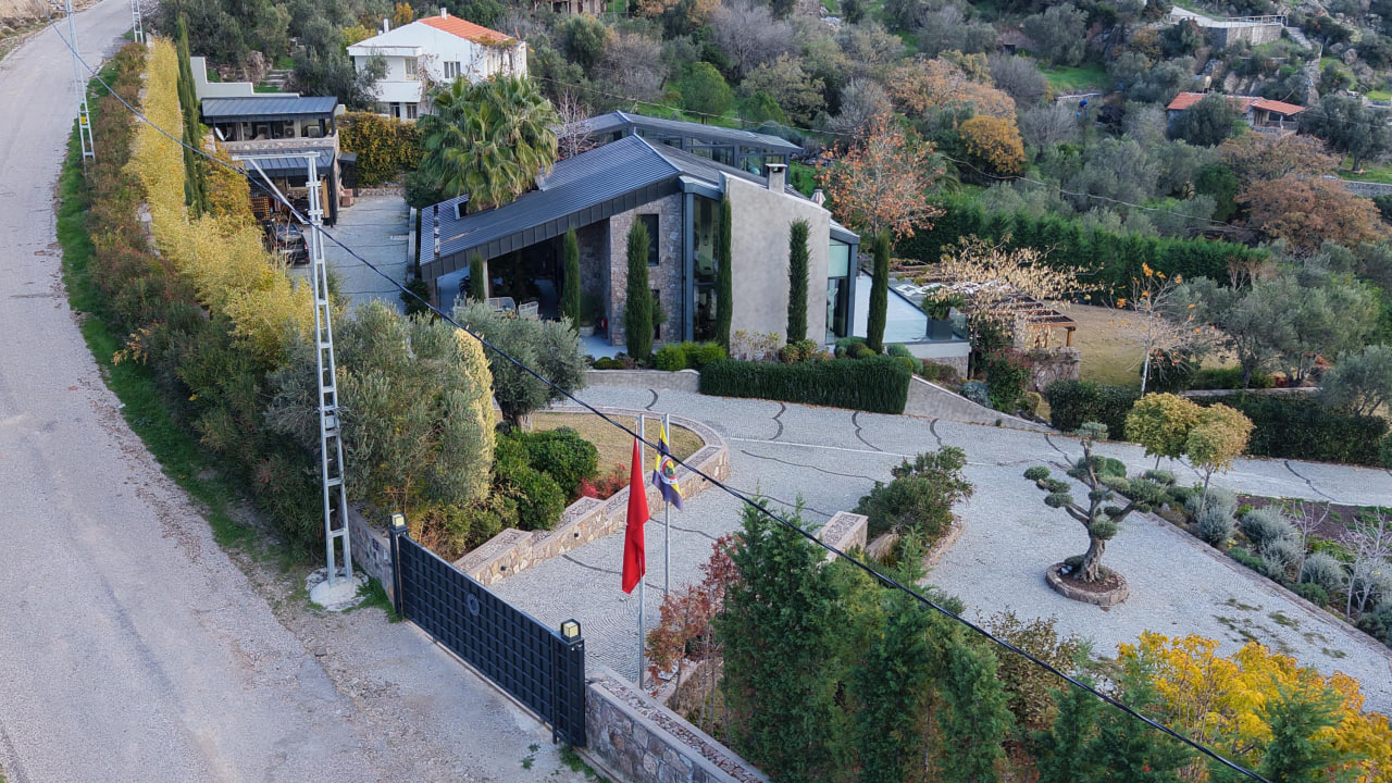 Öte yandan Sadettin Saran'ın Kuruoba köyündeki villası, dron ile havadan görüntülendi.