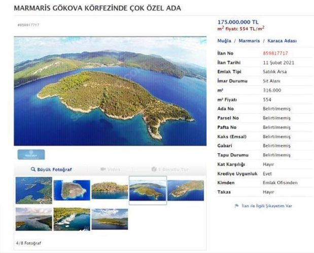 Muğla'nın Marmaris ilçesi Gökova Körfezi'ndeki Karaca Adası, ABD'de yaşayan Türk iş insanı tarafından 7 yıldızlı otel yapılmak amacıyla 1980 yılında satın alındı. Cumhurbaşkanlığı konutu karşısında bulunan 316 bin metrekarelik ada, 1983 yılında birinci derece SİT alanı ilan edildi. Adayı satın alan iş insanı, 41 yıl boyunca adanın vergilerini ödedi, ancak SİT alanı olması nedeniyle otel inşaatına başlayamadı. Yatırımdan vazgeçen iş insanı, adayı 2019 yılı Eylül ayında 210 milyon liradan internette satışa çıkardı. Adanın fiyatı en son geçen şubat ayında 35 milyon liralık indirimle 175 milyon liraya düşürüldü. Yabancı yatırımcılardan büyük ilgi görmesine rağmen satış için istenen rakamı veren olmadı.