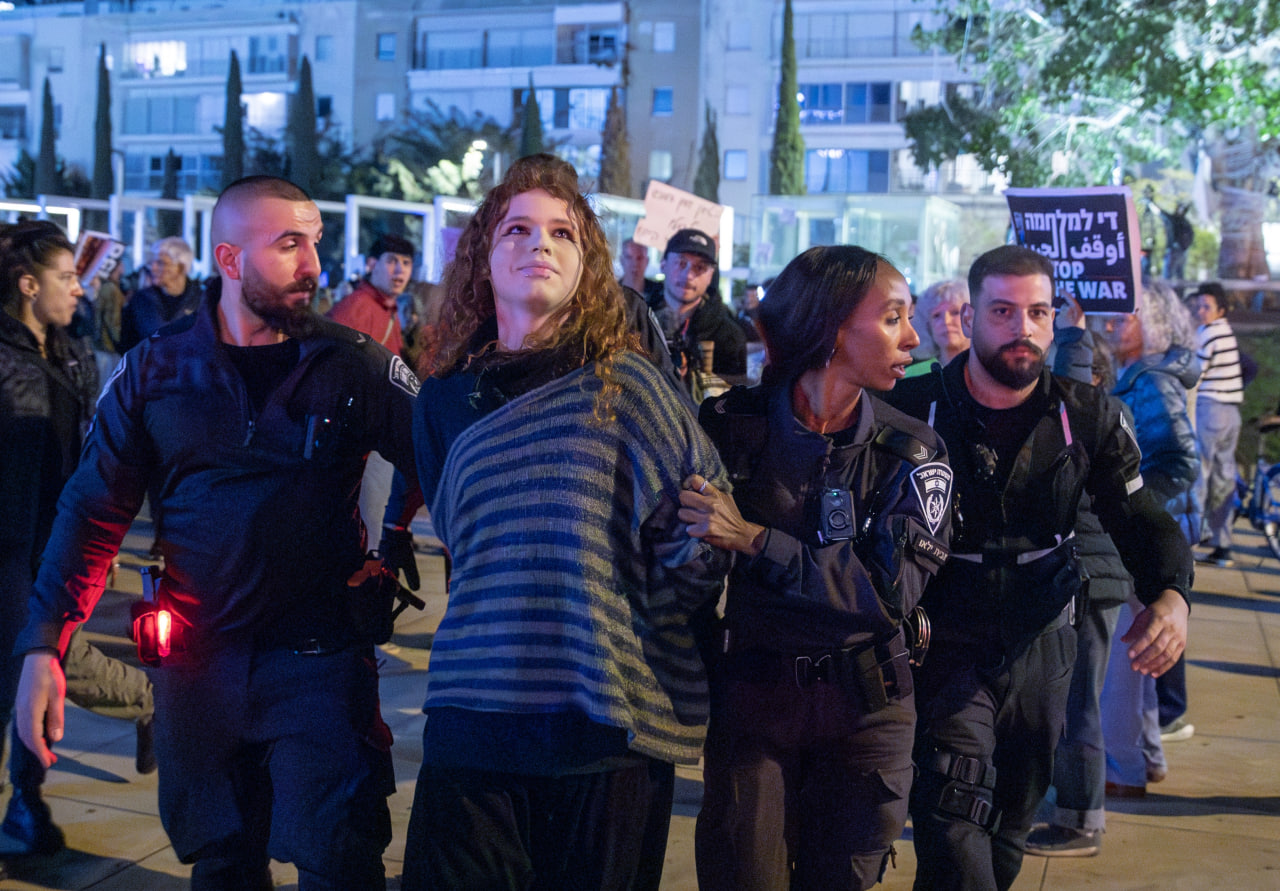 Bazı anket çalışmalarında İsraillilerin büyük çoğunluğunun İran'a saldırıları desteklediği belirtilmesine rağmen sivil toplum kuruluşlarının çağrısıyla yüzlerce İsrailli, Tel Aviv'deki sembolik Habima Meydanı'nda savaş karşıtı protesto için toplandı.