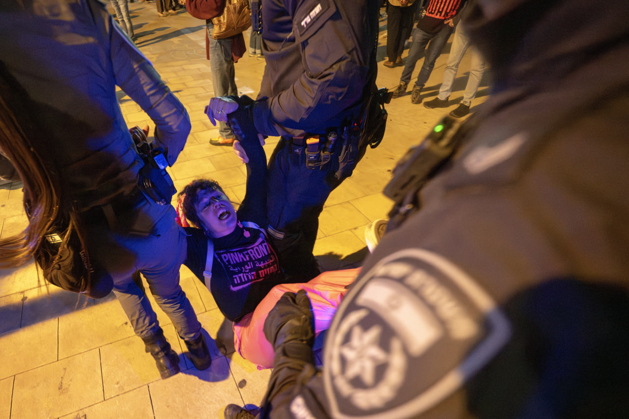Göstericileri alandan çıkarmak isteyen İsrail polisi ve bölgede yeniden toplanan protestocular arasında meydana gelen arbede yaklaşık bir saat boyunca sürdü. İsrail polisi, bazı göstericileri gözaltına aldı.