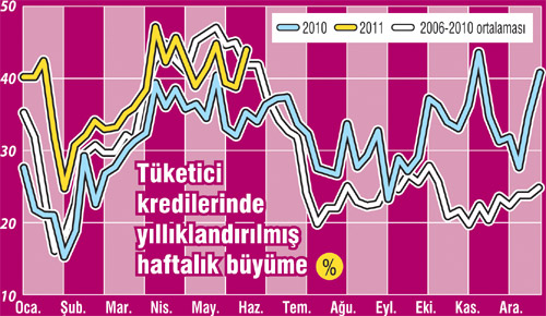 HSBC Stratejisti Fatih Keresteci ise kredilerdeki artışın MB’nin açıklamalarını desteklemediğini belirterek şu yorumda bulundu: “MB, son dönemde hem sunumlarında hem de toplantılarda, kredilerdeki gidişatın politika bileşimine tepki vermeye başladığını vurguluyordu. Artış oranının yüksek gitmesini ise mevsimsel nedenlere bağlayordu. Nisan - mayıs aylarında 2006-2010 ortalamasının altında giden tüketici kredi artışının yılın ikinci yarısında aynı trendi takip edip yüz 25’lere gerileyebileceğini savunuyordu. Son iki haftaya ilişkin açıklanan veriler MB’nin bu görüşünü pek desteklemiyor. 3 Haziran verisi, mevsimsellikten arındırılmış tüketici kredisi yıllık büyüme hızını 2006-2010 yılı ortalamasının üzerine taşımış durumda.