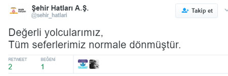 İstanbulluarı rahatlatan haber az önce Şehir Hatları AŞ'den geldi. Şirketin resmi Twitter adresinden yapılan açıklamada, "Tüm seferlerimiz normale dönmüştür" ifadesi kullanıldı.