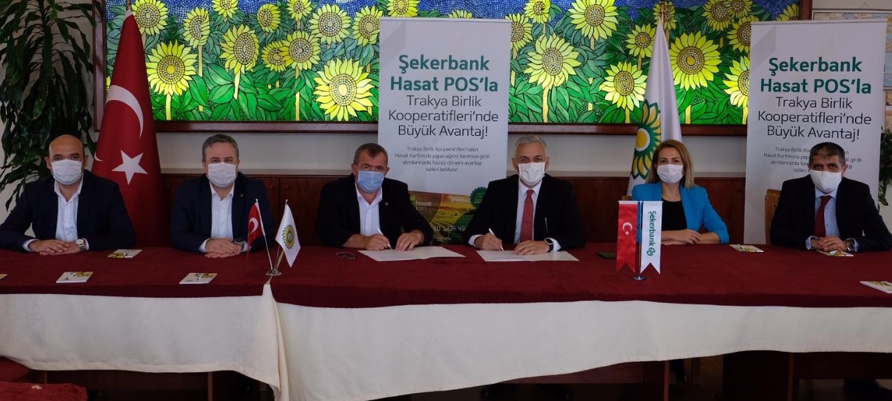 Şekerbank, Trakya Yağlı Tohumlar Tarım Satış Kooperatifleri Birliği (Trakya Birlik) ile “Hasat Kart” protokolü imzaladı. Protokol, Şekerbank KOBİ, Perakende ve Tarım Bankacılığı Genel Müdür Yardımcısı Tuğbay Kumoğlu ile Trakya Birlik Yönetim Kurulu Başkanı Ahmet Akgün ve Trakya Birlik Genel Müdürü Hakan Çalen arasında imzalandı. Protokol kapsamında, Şekerbank’ın çiftçi müşterilerine özel olarak sunduğu Hasat Kart ile Trakya Birlik’e bağlı kooperatiflerden tohum, gübre, zirai ilaç gibi tarımsal girdi ihtiyaçlarını 6 aya varan vade ve sıfır faiz seçeneğiyle alabilecek olan çiftçiler, ödemelerini hasat zamanı yapabilecek.