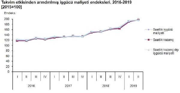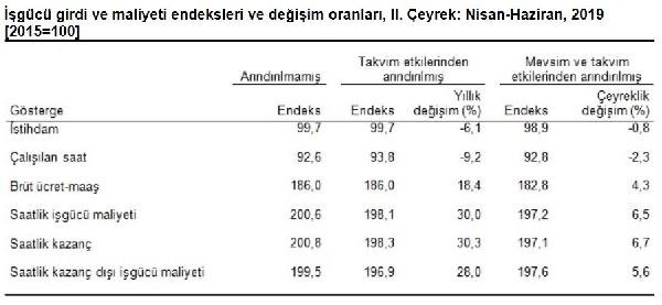Saatlik işgücü maliyet endeksi geçen yılın aynı çeyreğine göre yüzde 30 arttı.