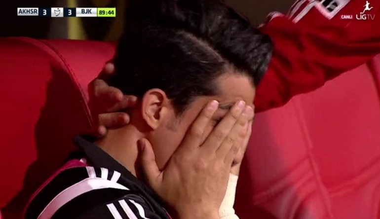 Karşılaşmayı yedek kulübesinde izleyen tecrübeli futbolcu, 78. dakikada Rodallega'nın skoru 3-2 yapan golü sonrasında gözyaşlarını tutamadı.