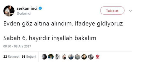 İnci Sözlük'ün kurucusu Serkan İnci kişisel Twitter hesabından gözaltına alındığını duyurdu.