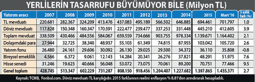 Artış oranlarına bakınca yılın ilk çeyreğinde reel artış en çok yüzde 9.5 ile hisse senetlerinde. Yüzde 7.6 ile bireysel emeklilik fonlarında ve yüzde 3.9 ile döviz hesaplarında artış var. Borsada yerlilerin payı artmadı ama hisseler değerlendiği için böyle bir büyüme yaşandı. Döviz hesaplarında her yönden artış var, BES’i de devlet beslediğinden halkın ilgisi yüksek.