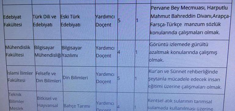 Hürriyet'te yer alan habere göre, üniversitenin internet sitesinde yayınlanan ilanlarda ayrıca, Beden Eğitimi ve Spor Yüksek Okuluna alınacak doçent için ise ‘'Güreşçilerde buz masajının toparlanmaya ilişkin biyokimyasal parametrelere etkisi üzerine çalışması olan'' ve Mühendislik Fakültesi'ne alınacak yardımcı doçent için ise 'Görüntü izlemede gürültü azaltmak konularında çalışmış olmak' özelliklerine uyan adayların başvurması istendi.