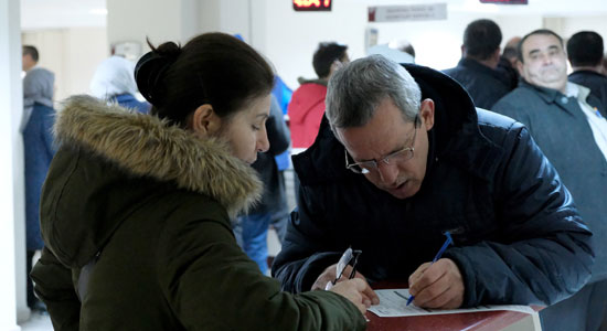 Borçlanma başvurularının yoğunluğu nedeniyle hafta sonu da hizmet veren SGK il müdürlüklerine gelenler, buradaki görevlilerden EYT kapsamı, pirim sayıları ve çalışma süreleri gibi konularda da bilgi aldı.