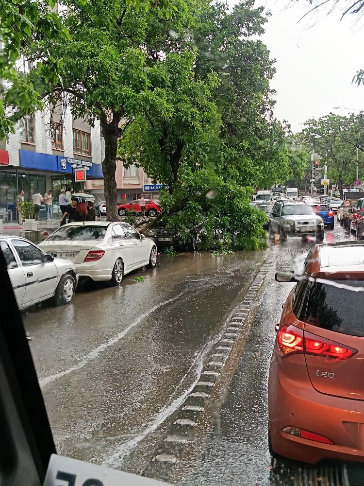 Başkent Ankara'da saat 15.00 sıralarında sağanak ve şiddetli rüzgar etkili oldu. Yağış, şehirde hayatı olumsuz etkiledi. Birçok noktada cadde ve sokaklarda su birikintileri oluştu.