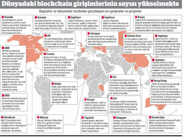 Siz bu arada yandaki çizime bakın. Bakın hangi ülkeler blockchain teknolojisi ile ilgili ne tür girişimler başlatmış, şifreli para ile ilgili ne tür düzenlemeler yapıyorlar. Dikkat çekici olan ne? Türkiye’nin afyon yutmuş sessizliği elbette. Dedim ya, Türkiye’nin iki gündemi var: Biri yalancı, diğeri sahici. Bu topraklarda sahici olanla şimdilik pek ilgilenilmiyor.