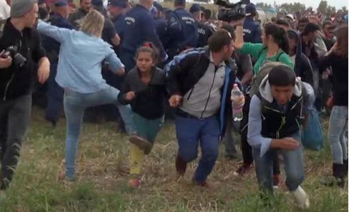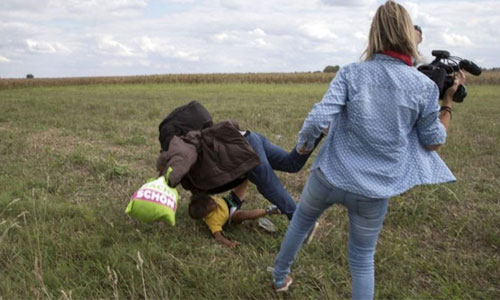 2015'in eylül ayında, Macaristan-Sırbistan sınırında polisten kaçmaya çalışan Suriyeli sığınmacı küçük kıza tekme atıp, kucağındaki çocuğu ile kaçmaya çalışan babaya çelme takıp düşüren kadın kameraman Petra Laszlo, 3 yıl hapis cezasına çarptırıldı.