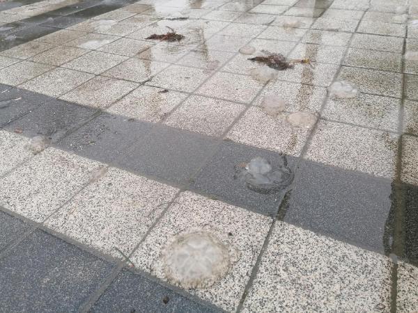 Lodosun etkisiyle dev dalgalar oluşurken, dalgaların etkisiyle yürüyüş yolu da deniz analarıyla doldu.