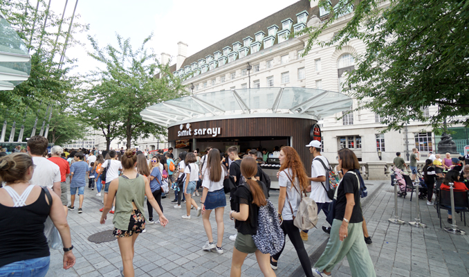 Simit Sarayı, dünyanın en önemli turizm, finans ve alışveriş merkezlerinde bayrağını dalgalandırmaya devam ediyor. London Eye’daki yeni mağazasında misafirlerini ağırlamaya başlayan Simit Sarayı, açıldığı ilk gün İngilizlerin ve İngiltere’yi ziyaret eden turistlerin uğrak yeri oldu.