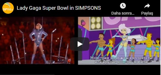 2012'de yayımlandığında Simpsonlar hayran kitlesinin büyük bir bölümü tarafından topa tutulan 23. sezondaki "Lisa Goes Gaga" bölümünde, Lady Gaga'nın (kendisi seslendirmişti) kablolara asılı halde bir stadyuma uçtuğu görülmüştü. Pop yıldızı, daha sonra bu gösteriyi 2017'deki Super Bowl devre arası şovunda, tuhaf şekilde benzer bir kıyafetle gerçek hayatta da yapmıştı.