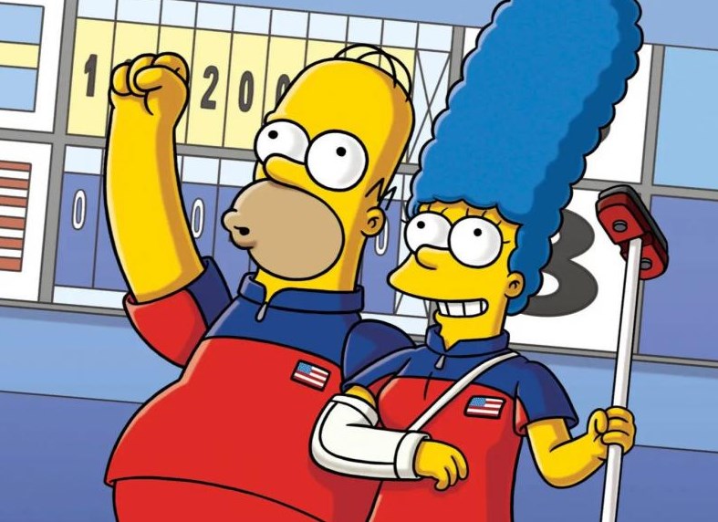 21. sezondaki "Boy Meets Curl" adlı bölümde Homer ve Marge, bir karışık çiftler curling takımına katılarak sonunda Kış Olimpiyatları'na gitmiş ve son dönemdeki Simpsonlar'ın ruhuna uygun şekilde beklenmedik biçimde gelişen olaylarla, İsveç'i yenerek ABD adına olimpiyatlarda altın madalyayı eve götürmüştü. Şaşırtıcı galibiyet aslında 8 yıl sonra Pyongyang'da ABD erkekler curling takımının ülkenin bu sporda olimpiyatlardaki ilk altın madalyasını kazanmasıyla gerçekleşmişti.