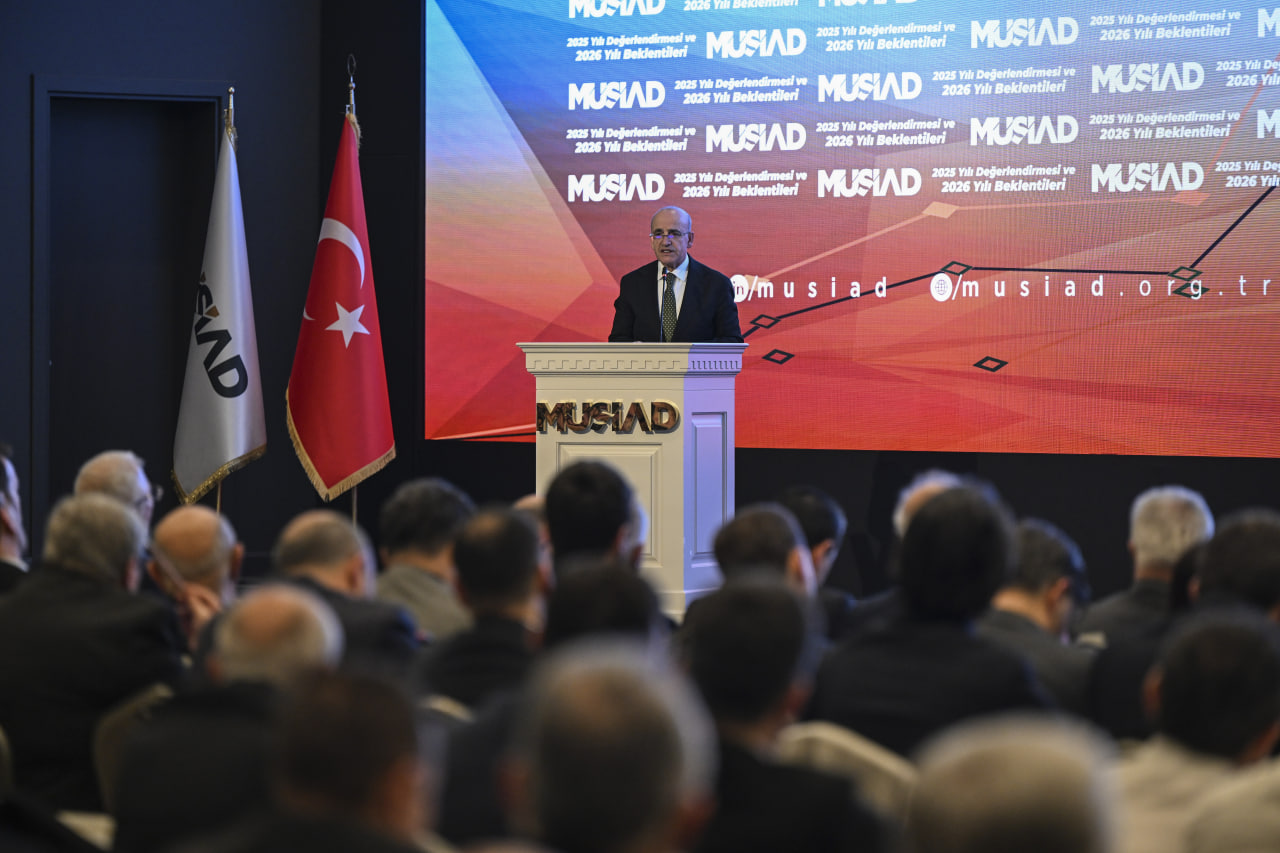 Hazine ve Maliye Bakanı Mehmet Şimşek, Müstakil Sanayici ve İşadamları Derneği'nin (MÜSİAD) "2025 Yılı Değerlendirmesi 2026 Yılı Beklentileri" programında konuştu.
