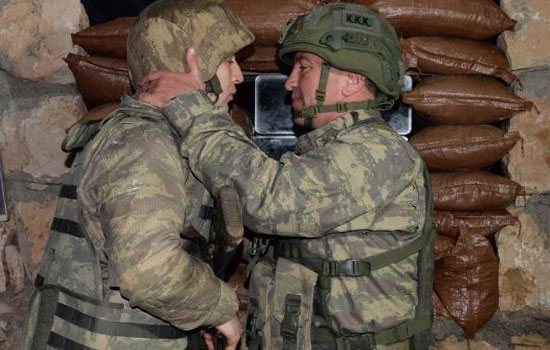 6'ncı Komando Tugay Komutan Yardımcısı Albay Metin Özdemir ise beraberindeki komutanlarla birlikte üs bölgesindeki askerleri 2019'un ilk dakikalarında nöbet tuttukları mevzilerde ziyaret etti. Albay Özdemir ile beraberindeki komutanlar, yeni yılını kutladıkları askerlerle bir süre sohbet etti. Komutanlar, ardından cep telefonuyla aradıkları askerlerin ailelerinin de yeni yılını kutladı. Evlatlarının kendilerine emanet olduğunu söyleyen komutanlar, telefonu askerlere verdi. Askerler de aileleriyle cep telefonuyla konuşup, yeni yıl dileklerini iletti. Albay Özdemir ve beraberindekiler, 2019'a nöbet arasında giren üs bölgesindeki bazı askerleri de dinlendikleri alanda ziyaret etti. Askerler, burada komutanlarıyla birlikte sobada pişirilen kestaneden yiyip, çay içti. Bir asker de 'Gesi Bağları' türküsünü seslendirdi.