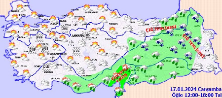 Meteoroloji Genel Müdürlüğü tarafından yapılan son değerlendirmelere göre: Ülkemiz genelinin parçalı ve çok bulutlu, Orta ve Doğu Akdeniz, İç Anadolu'nun güney ve doğusu, Orta ve Doğu Karadeniz (Samsun dışında), Doğu Anadolu’nun kuzey ve batısı, Güneydoğu Anadolu ile Antalya, Muş ve Bitlis çevrelerinin yağışlı geçeceği tahmin ediliyor. Yağışların, Osmaniye, Kahramanmaraş ve Hatay çevrelerinde kuvvetli, Antalya’nın doğu, Mersin’in batı kesimlerinde yer yer kuvvetli olması bekleniyor. Yağışların, genellikle yağmur ve sağanak, Doğu Karadeniz’in iç kesimleri, Doğu Anadolu’nun kuzeyi ile Muş ve Bitlis çevrelerinde karla karışık yağmur ve kar şeklinde olacağı tahmin ediliyor. İç ve batı kesimlerde pus ve sis, doğu kesimlerde buzlanma ve don olayı bekleniyor. Doğu Karadeniz’in iç kesimleri ile Doğu Anadolu’nun kuzey ve doğusunda çığ tehlikesi bulunmaktadır.