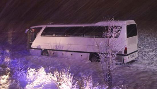 Sivasspor alt yapı oyuncularını taşıyan Ertan Öğütlü yönetimindeki 58 ABE 995 plakalı otobüs, Sivas-Kayseri kara yolu Ebuhan köyü yakınlarında yoğun kar yağışı nedeniyle kontrolden çıkarak şarampole indi.