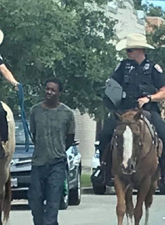 ABD'nin Teksas eyaletinde at üzerindeki iki beyaz polisin bir siyah adamı iple bağlayarak yürütmesini gösteren fotoğrafın internette yoğun tepki çekmesinin ardından polis yetkilileri özür diledi.