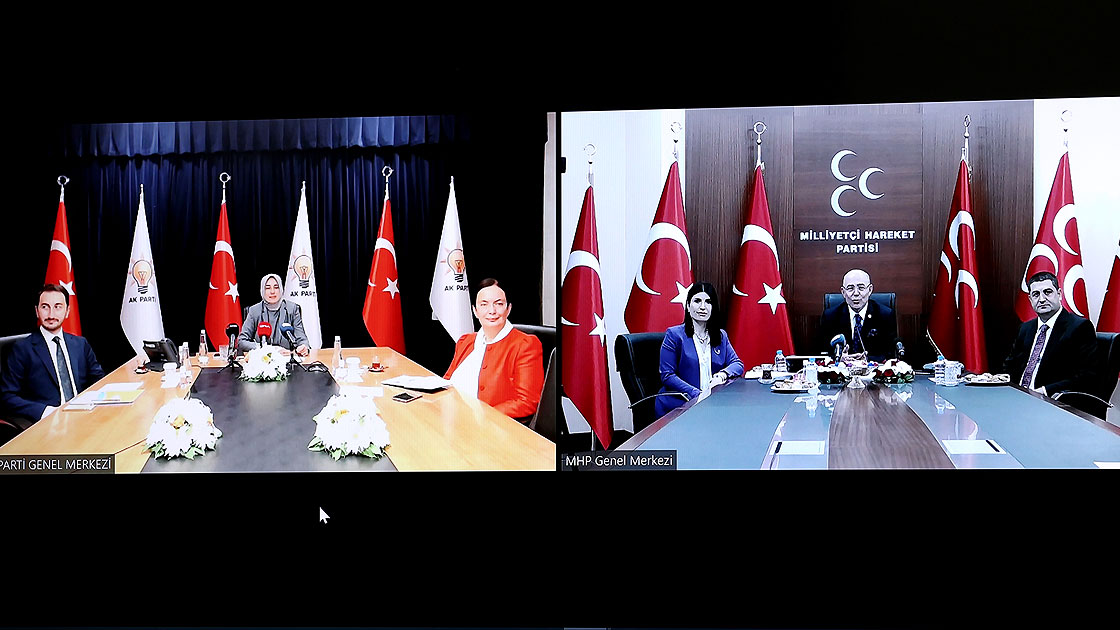 AK Parti Genel Başkan Yardımcısı Özlem Zengin, Genel Merkez Kadın Kolları MYK Üyesi Ayten Aydın, Genel Merkez Gençlik Kolları MYK Üyesi Muhammed Cem Çekerek'ten oluşan heyet, Kurban Bayramı dolayısıyla MHP heyeti ile video konferans yöntemiyle bayramlaştı.