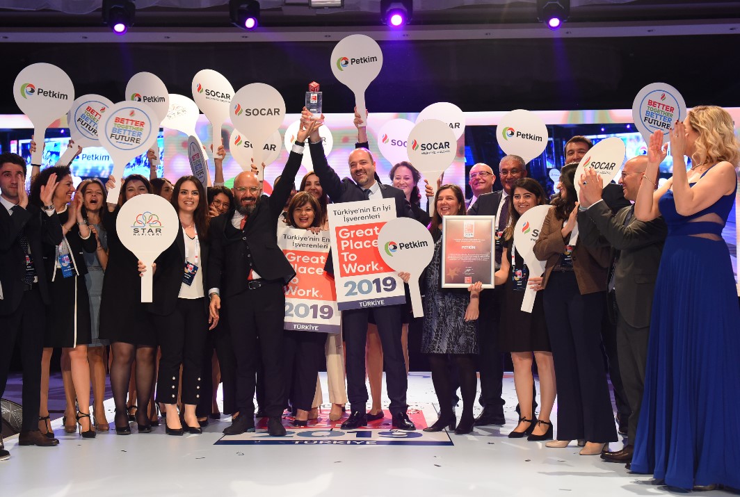 SOCAR Türkiye ve iştirakleri STAR Rafineri ile Petkim, Great Place to Work Enstitüsü'nün her sene düzenlediği, Türkiye'nin en iyi işverenlerini belirleyen Great Place to Work Recognition Programı 2019 Araştırmaları’ndan ödülle döndü. SOCAR Türkiye, 250-500 çalışan kategorisinde 6’ncı olurken STAR Rafineri 500-2.000 çalışan kategorisinde 7’nci, Petkim ise 2.000 ve üzeri çalışan kategorisinde 4’üncü sırada yer aldı. SOCAR Türkiye, üç kez katıldığı programın üçünde de bu önemli ödüle değer görüldü. 30 Nisan’da düzenlenen törende ödülleri, SOCAR Türkiye adına İnsan Kaynakları Grup Direktörü Sibel Uğur, STAR Rafineri adına Genel Müdür Mesut İlter, Petkim adına Genel Müdür Yardımcısı Levent Kocagül aldı.