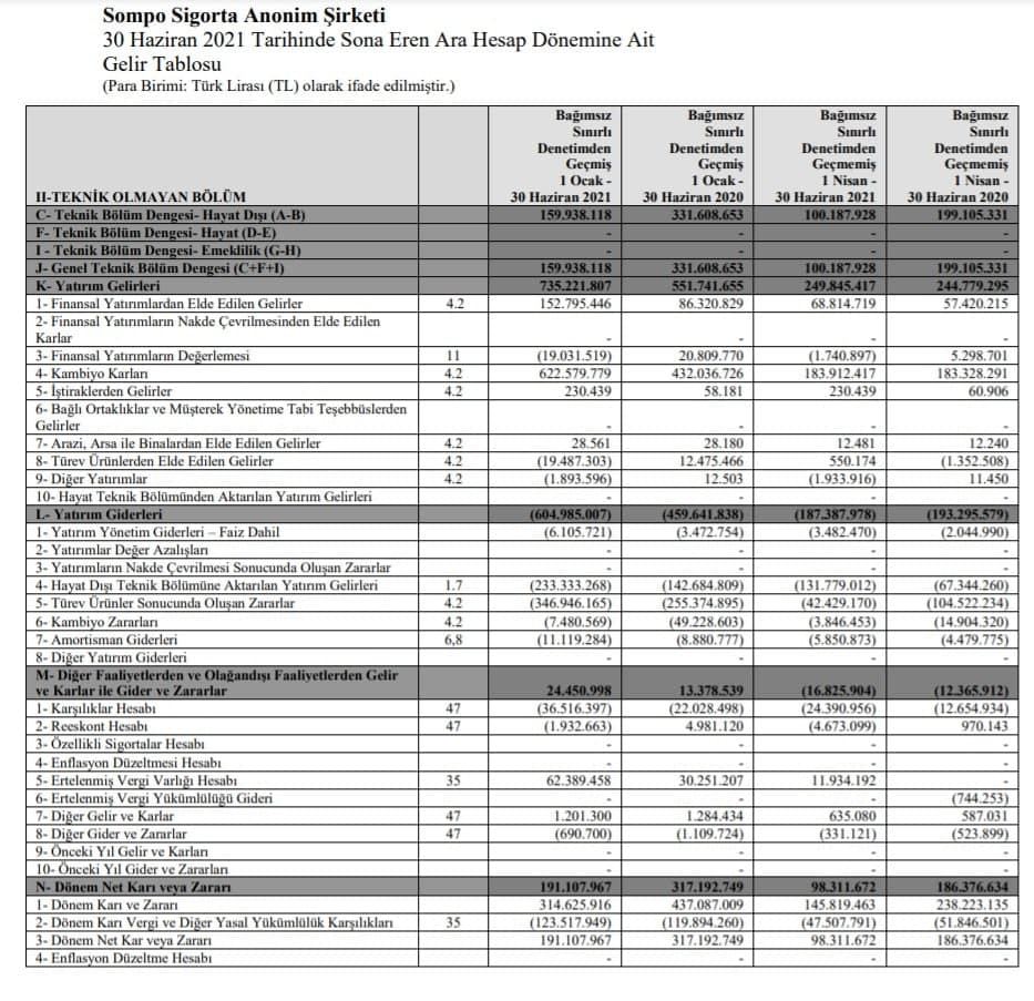 Ancak şirketin Haziran sonu yani ikinci çeyrek bilançoları incelendiğinde kârlılıkta rekor oranda düşüş yaşandığı gözleniyor. Bağımsız denetimden geçmiş verilere göre 2020 yılı Haziran ayında 317 milyon lira kâr açıklayan Sompo Sigorta bu yılın ilk altı ayında 191 milyon lira kâr açıkladı. Sigorta şirketinin kârı yüzde 40 gibi rekor oranda düşüş kaydetti.