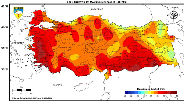 Bu yılın Ağustos ayında 22 istasyonda yeni ekstrem (maksimum) sıcaklık gerçekleşti. Ekstrem sıcaklık gerçekleşen il ve ilçelerin büyük kısmı Ege ve Akdeniz bölgelerinde. Büyük orman yangınlarının yaşandığı Manavgat, Marmaris ve çevreleri de ekstrem sıcaklık yaşanan noktalar arasında. Ekstrem sıcaklık ölçülen yerler ise şöyle; Tekirdağ, Çanakkale, Akhisar, Manisa, Aydın, Datça, Marmaris, Dursunbey, Bergama, Ödemiş, Nazilli, Milas, Dalaman, Fethiye, Antalya, Finike, Kaş, Eğirdir, Köyceğiz, Manavgat, Demre ve Gazipaşa.