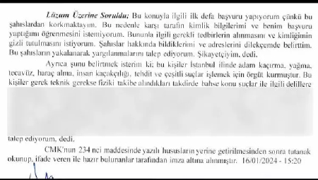 İddiaya göre kendisinden 1 sene içinde para isteyen şebekeye istediği para vermeyen M.S. ailesiyle tehdit edildi. Bunun üzerine İstanbul Cumhuriyet Başsavcılığına suç duyurusunda bulunan M.S, "Bunların hepsi 4 kişi. Bir grupta, mesela 20-25 kişi ama ben dördünü tanıyorum. Misafirler, yolcular İran ve Afganistan tarafından kaçak şekilde İstanbul'a geliyorlar. Burada 15-20 gün 100-150 kişi kalıyorlar. Buradan tekneyle Fethiye, Marmaris ve Çanakkale tarafından, İtalya'ya gidiyorlar. İran'dan Türkiye'ye ise kaçak şekilde giriyorlar" dedi.