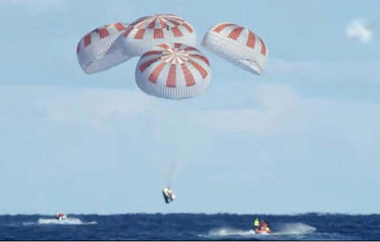 Mekiğin ABD yerel saatiyle 07.52'de atmosfere girdiği ve 08.45'te okyanus yüzeyine temas ettiği belirtildi.