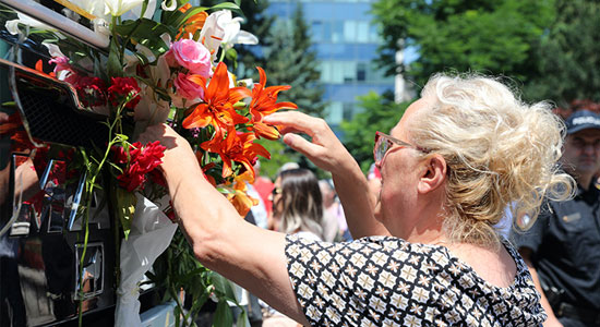 Duygusal anların yaşandığı konvoy geçişi sırasında birçok kişi kamyona sarılarak gözyaşı döktü.