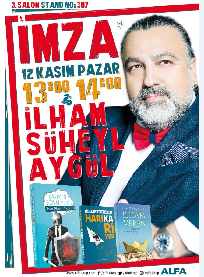 Beyaz yakalı üçlemesi ile aylarca çok satanlar listesinde yer alan ve 2012 yılında ''Finans Sektörünün En Çok Okunan Yazar''ı seçilen Turkkariyer Yönetim Kurulu Başkanı İlham Süheyl Aygül, Kariyer Şövalyesi’yle, TÜYAP Kitap Fuarı’nda hasrete son veriyor. Aygül, 12 Kasım Pazar günü saat 13.00’te 3. Salon’daki Alfa Yayınları standında yapılacak imza töreni için, “Beyaz yakalı, öğrenci, danışan, menti, okurları ve dostlarımızı davet ederiz” mesajını gönderiyor.