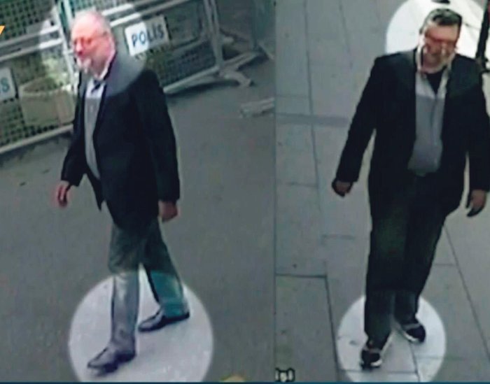 Muhammed el Medeni (sağda) Cemal Kaşıkçı'nın (solda) kıyafetlerini giyerek dışarı çıktı.