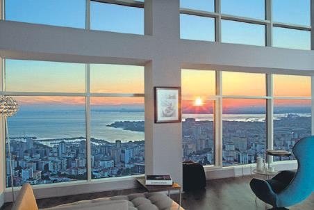 Park Residences Cadde'nin 44'üncü katındaki penthouse'lardan birini kiralayan çift, tüm İstanbul'un ayaklarının altında olduğu böylesi bir manzaraya sahip.
