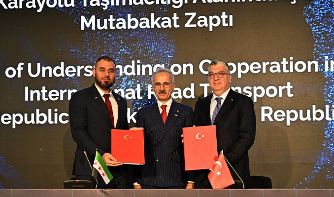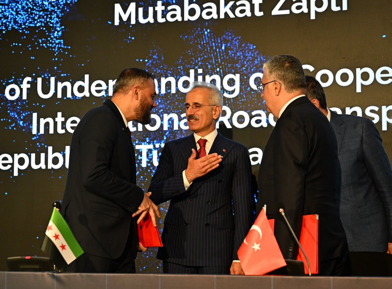 Türkiye ile Suriye arasında 'Uluslararası Karayolu Taşımacılığı Alanında İş Birliğine İlişkin Mutabakat Zaptı' anlaşması imzalandı. Ulaştırma ve Altyapı Bakanı Abdulkadir Uraloğlu, "Türkiye ile Suriye arasındaki anlaşmanın imza törenini gerçekleştirdik. 'Uluslararası Karayolu Taşımacılığı Alanında İş Birliğine İlişkin Mutabakat Zaptı' anlaşmasını imzaladık" dedi.