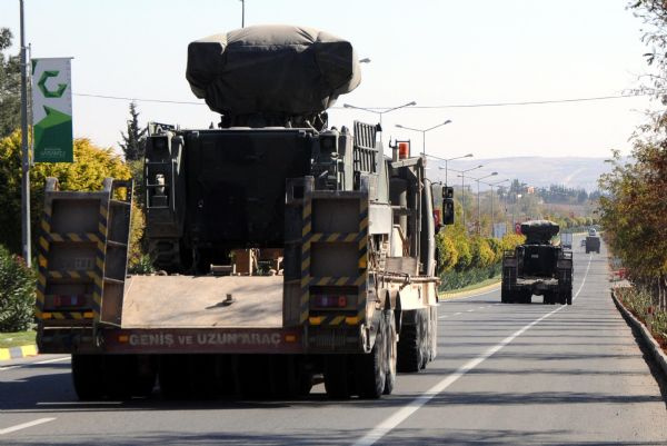 Gaziantep'e çekicilerle getirilen ve üzeri brandalarla örtülü hava savunma sistemleri, güvenlik önlemleri arasında Suriye sınırındaki Oğuzeli İlçesi'ne doğru hareket etti.
