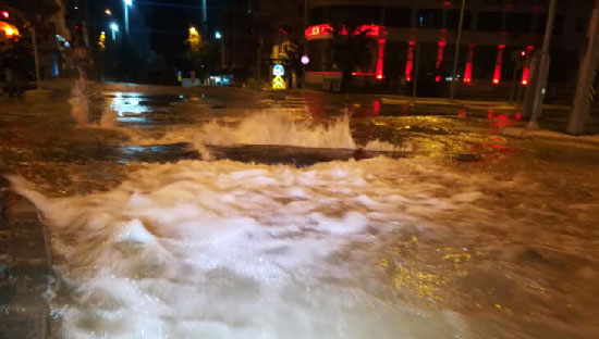 Edinilen bilgiye göre olay, İnkılap Mahallesi Koşuyolu Caddesi üzerinde meydana geldi. Gece saatlerinde patlayan 500’lük temiz su borusu Koşuyolu Caddesi ve Cemil Şeboy Caddesi’ni adeta göle çevirdi.