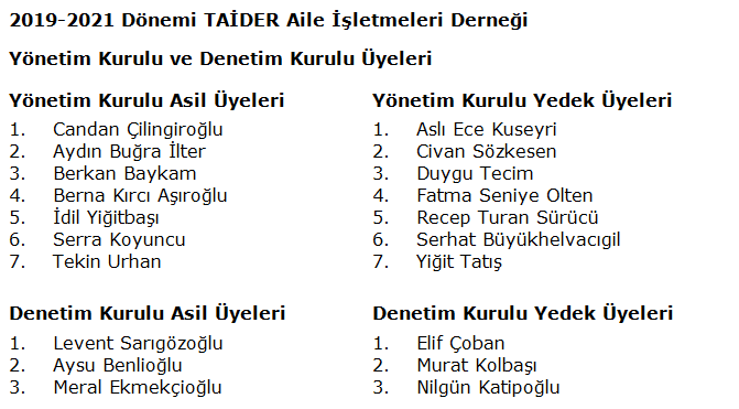 Yapılan seçimle derneğin yeni yönetim kurulunun asil ve yedek üyeleri de belirlendi: