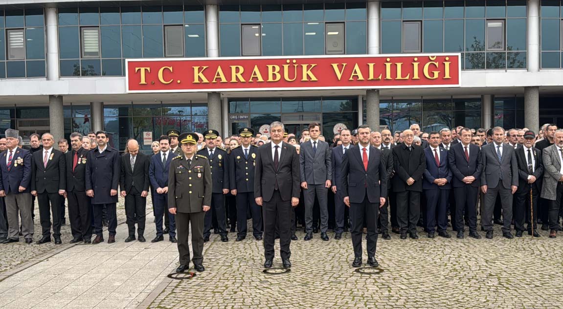 Karabük'teki törende Vali Mustafa Yavuz, Belediye Başkanı Özkan Çetinkaya ve Karabük Garnizon Komutanı Albay Murat Gürcan, Valilik bahçesindeki Atatürk Anıtı'na çelenk sundu.
