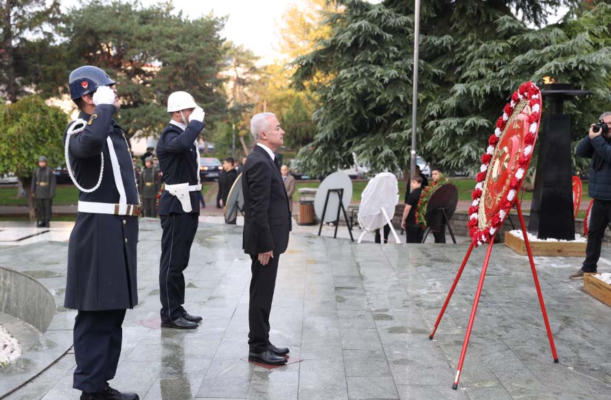 Erzincan'da belediye önündeki Atatürk Anıtı'na Vali Hamza Aydoğdu, Belediye Başkanı Bekir Aksun, 3. Ordu Kurmay Başkanı ve Garnizon Komutanı Tümgeneral Murat Ataç, çelenk sundu.