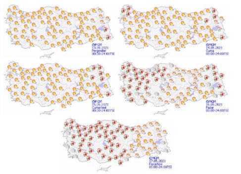 Meteoroloji Genel Müdürlüğü tarafından yapılan son değerlendirmelere göre: Ülkemizin doğu kesimlerinin parçalı ve yer yer çok bulutlu, öğle saatlerinden sonra Ağrı ve Van’ın doğusu ile Hakkari çevrelerinin yerel olmak üzere sağanak ve yer yer gök gürültülü sağanak yağışlı, diğer yerlerin az bulutlu ve açık geçeceği tahmin ediliyor. Hava sıcaklıklarının kuzey, iç ve doğu kesimlerde 2 ila 5 derece artacağı, diğer yerlerde önemli bir değişiklik olmayacağı ve mevsim normalleri üzerinde seyredeceği tahmin ediliyor.